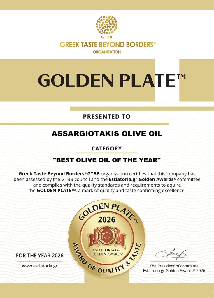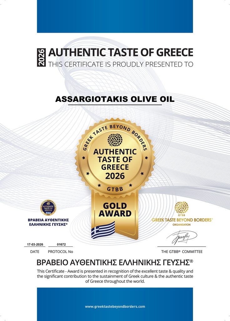 ASSARGIOTAKIS OLIVE OIL is Certified with the Gold Award of AUTHENTIC TASTE OF GREECE 2020 & 2021 & 2022 & 2025
