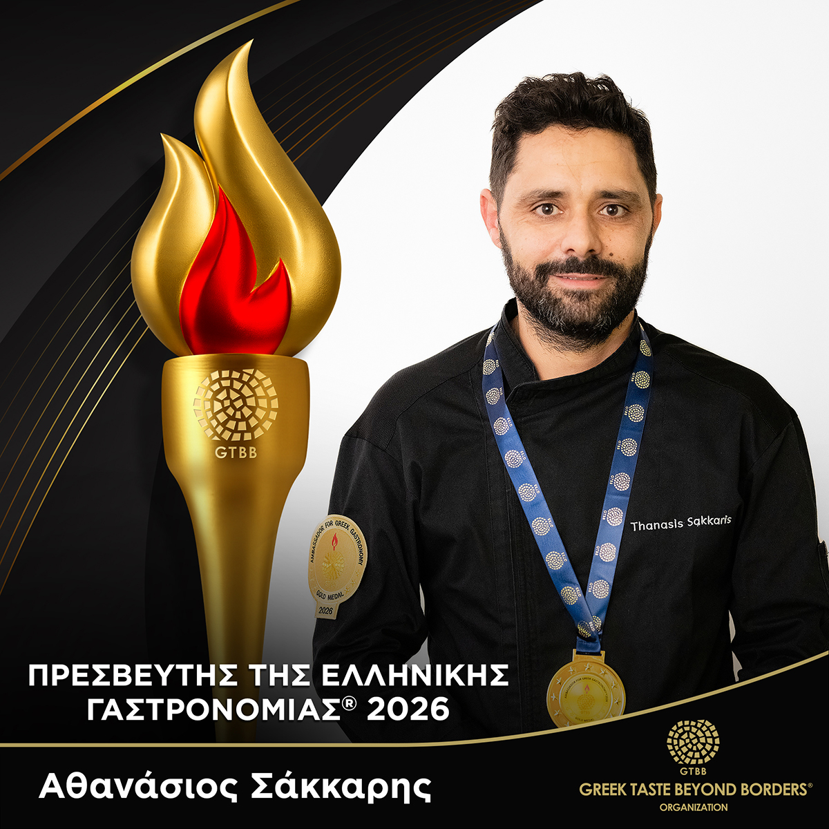 Ο ΑΘΑΝΑΣΙΟΣ ΣΑΚΚΑΡΗΣ ΕΙΝΑΙ ΕΠΙΣΗΜΟΣ «ΠΡΕΣΒΕΥΤΗΣ ΤΗΣ ΕΛΛΗΝΙΚΗΣ ΓΑΣΤΡΟΝΟΜΙΑΣ® 2026 - AMBASSADOR FOR GREEK GASTRONOMY®» | ΘΑ ΣΥΜΜΕΤΑΣΧΕΙ ΣΤΟ ΠΑΓΚΟΣΜΙΟ ΣΥΝΕΔΡΙΟ ΤΟΥ GREEK TASTE BEYOND BORDERS® (GTBB) ΣΤΟ ΜΕΓΑΡΟ ΜΟΥΣΙΚΗΣ ΑΘΗΝΩΝ ΤΟΝ ΑΠΡΙΛΙΟ ΤΟΥ 2026