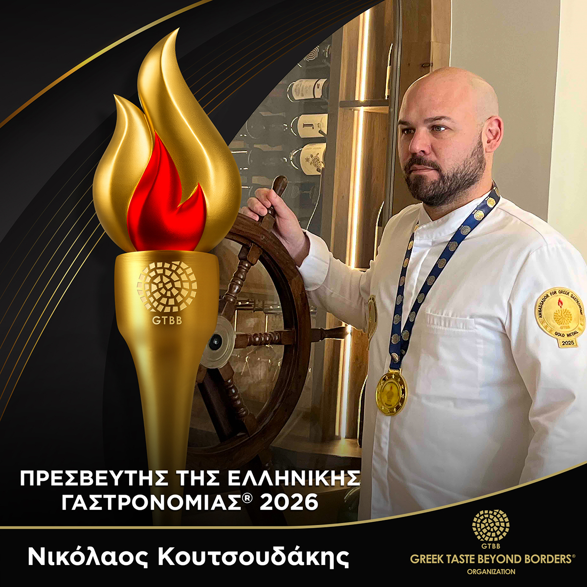Executive Chef NIKOLAOS KOUTSOUDAKIS IS CERTIFIED & AWARDED BY GREEK TASTE BEYOND BORDERS® GTBB WITH THE GOLD MEDAL 2021 & 2022 CERTIFICATION OF VALUE & QUALITY BY GTBB - ΜΕΤΑΛΛΙΟ ΑΞΙΑΣ ΤΟΥ GTBB