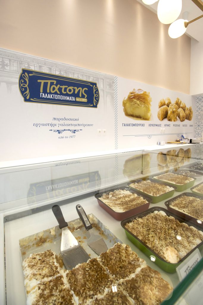 After the delicious galaktoboureko, it is the turn of the authentic “ekmek” with the velvety cream, the “kadaifi” and the syrups that in turn transfer the baton to the unique creams, the rice milk, the fresh creamy ice cream and the donuts that are also made in front of you ... Worth mentioning with high quality standards is the "milk" of the brand "Patsis Milk Making", which is produced & collected by small Greek farms to reach the 3 stores that have "Patsis Milk Making" in a unique modern packaging!