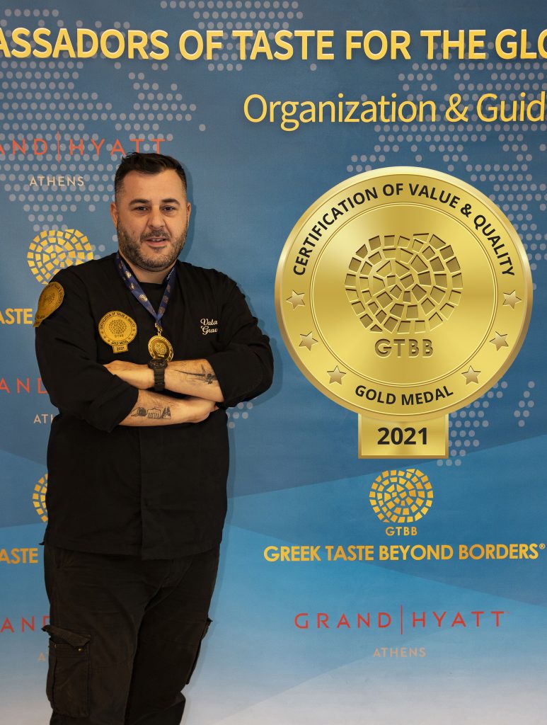 Valantis Gravanis was recently certified & awarded by the GREEK TASTE BEYOND BORDERS® GTBB organization with the CERTIFICATION OF VALUE & QUALITY GOLD MEDAL 2021 for his long standing career and exceptional Greek contemporary touch on cooking.